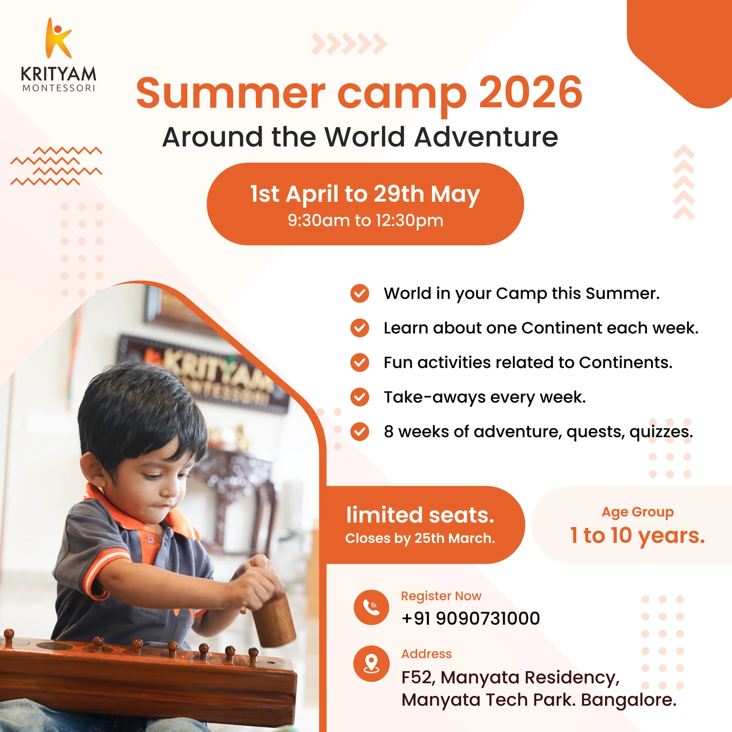 We’d love to hear from you! Whether you have questions, need details about our Montessori programs, or want to schedule a school visit at Krityam Montessori in Bangalore, we’re here to help.
